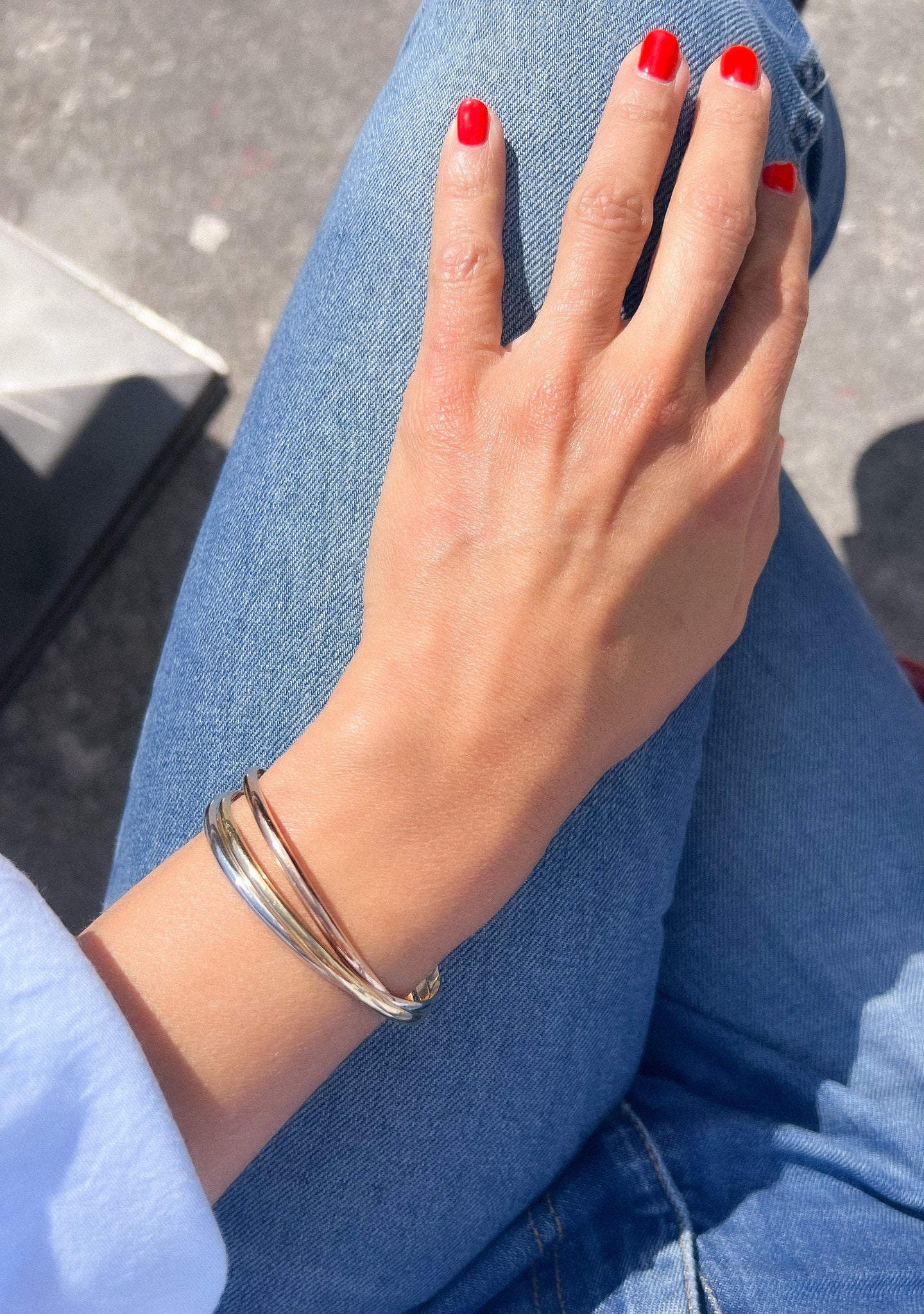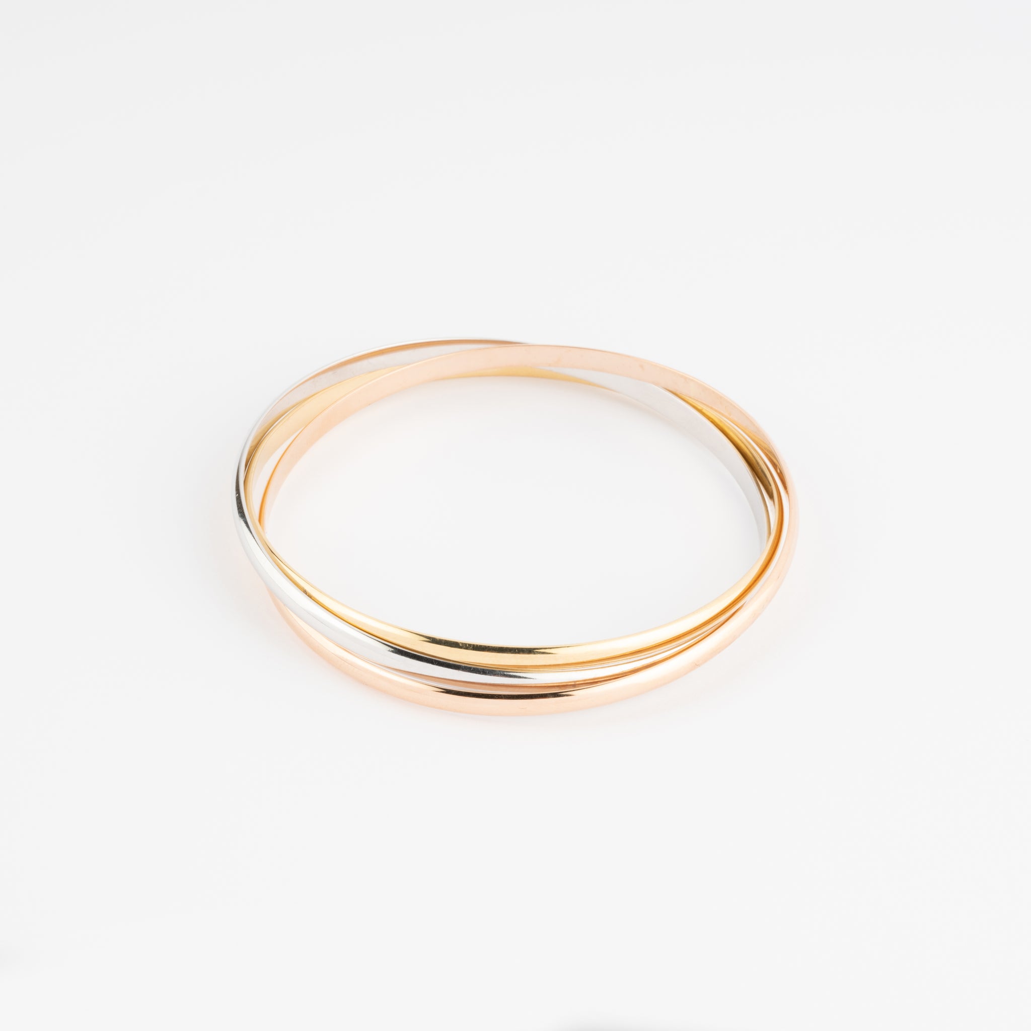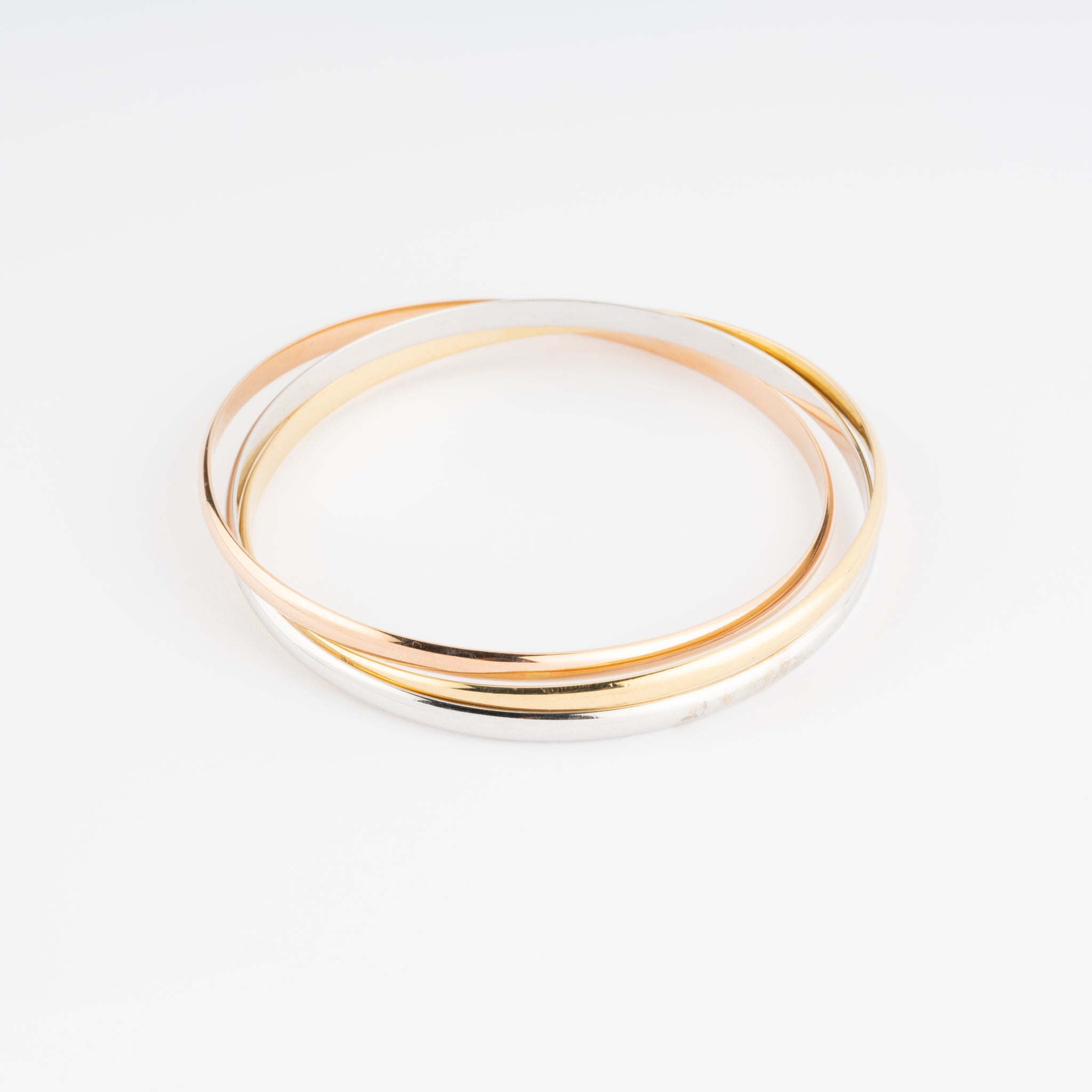 Bracelet 3 ors de Cartier modèle Trinity de 3 importants anneaux entrelacés en or rose, blanc et jaune.