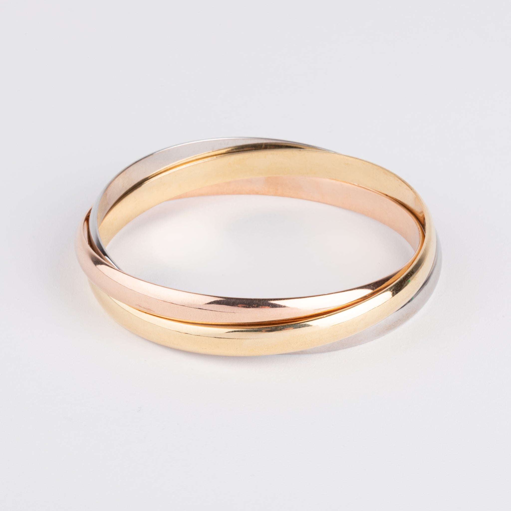 Bracelet Cartier Trinity composé de 3 importants anneaux entrelacés en or blanc,rose et jaune