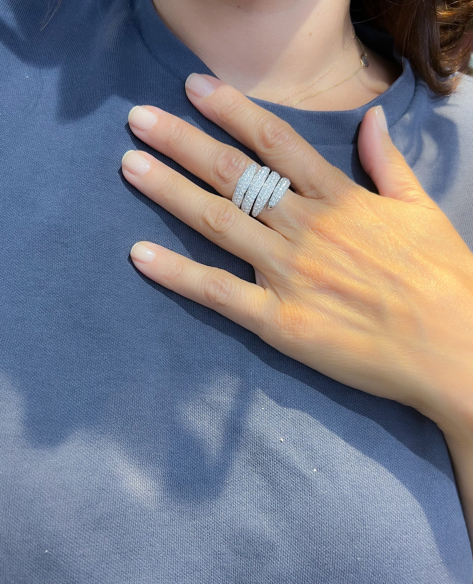 Bague de la maison Chaumet, collection Tango, en forme de spirale en or gris entièrement, pavé de diamants 18k.