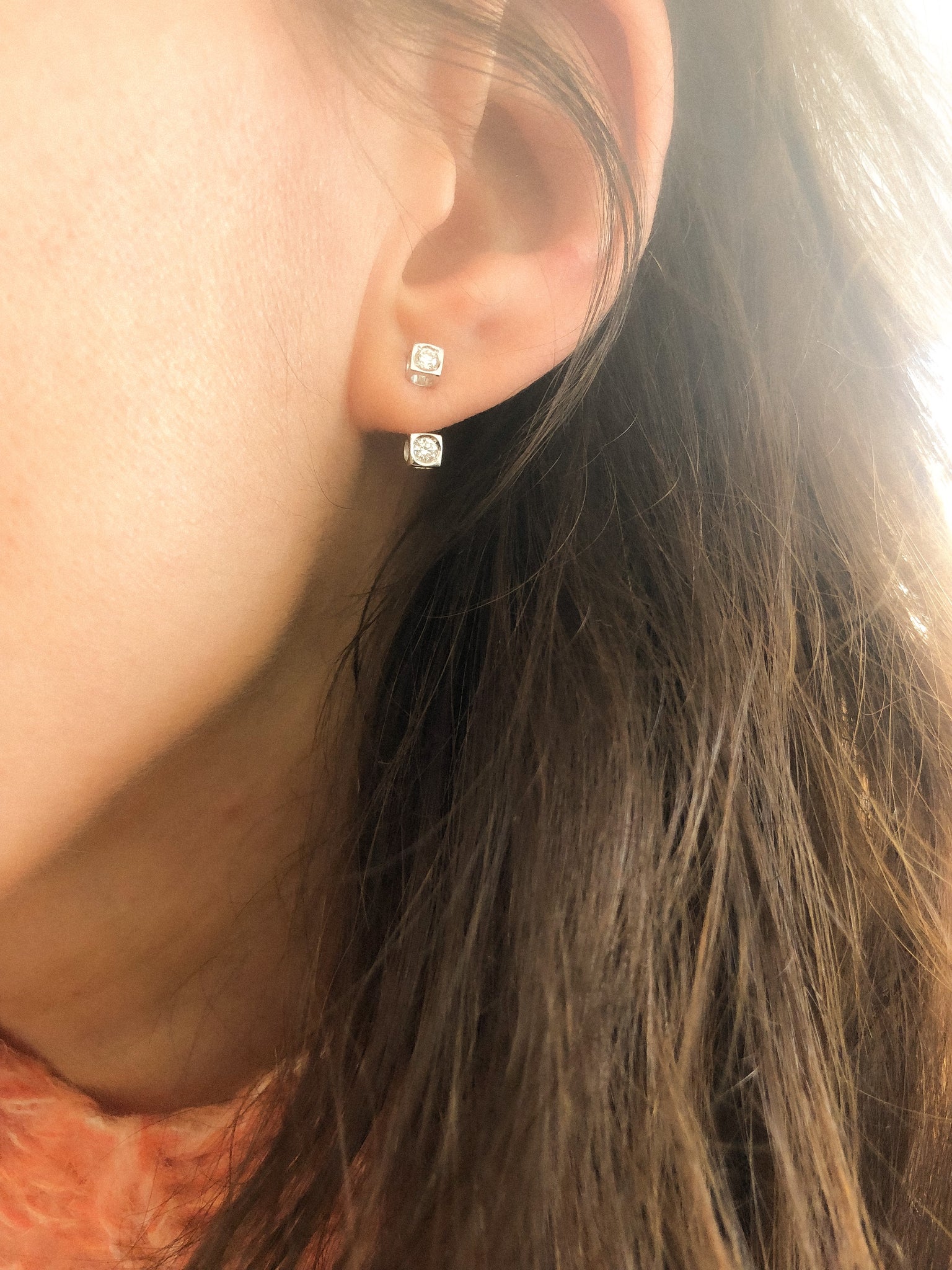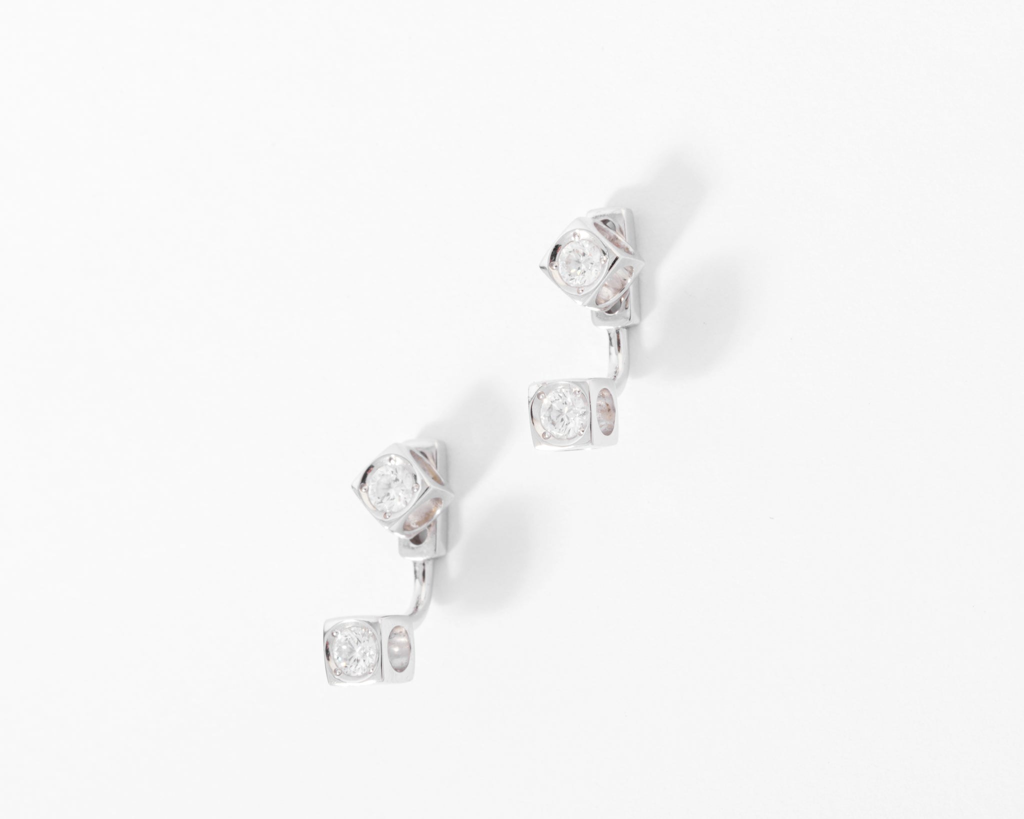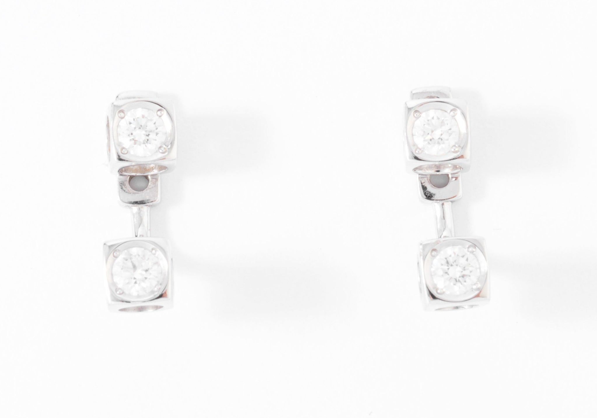 Boucles d'oreilles Dinh Van en or gris et diamants modèle Cube avec une partie qui se détache et hauteur réglable. Possibilité de porter juste un motif.