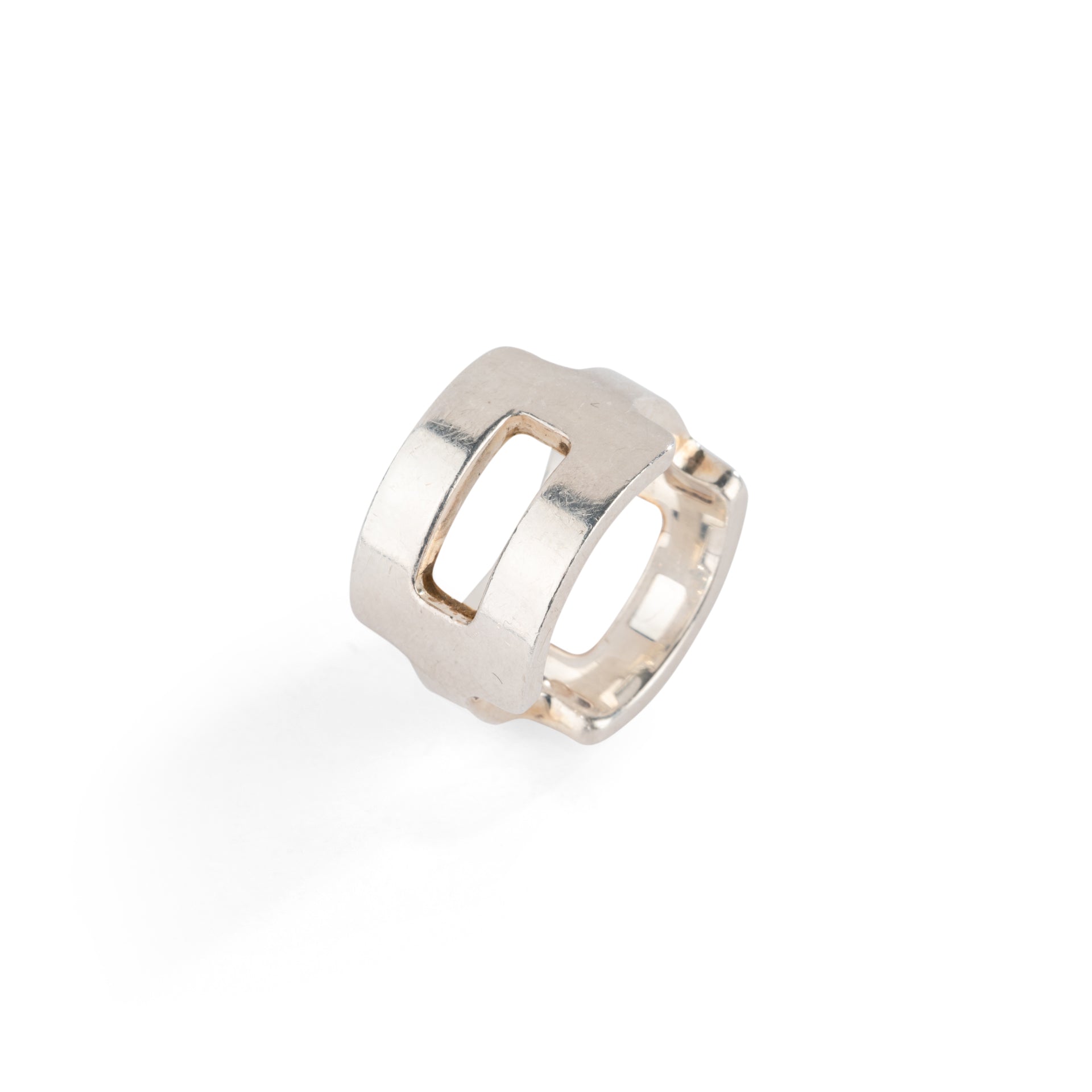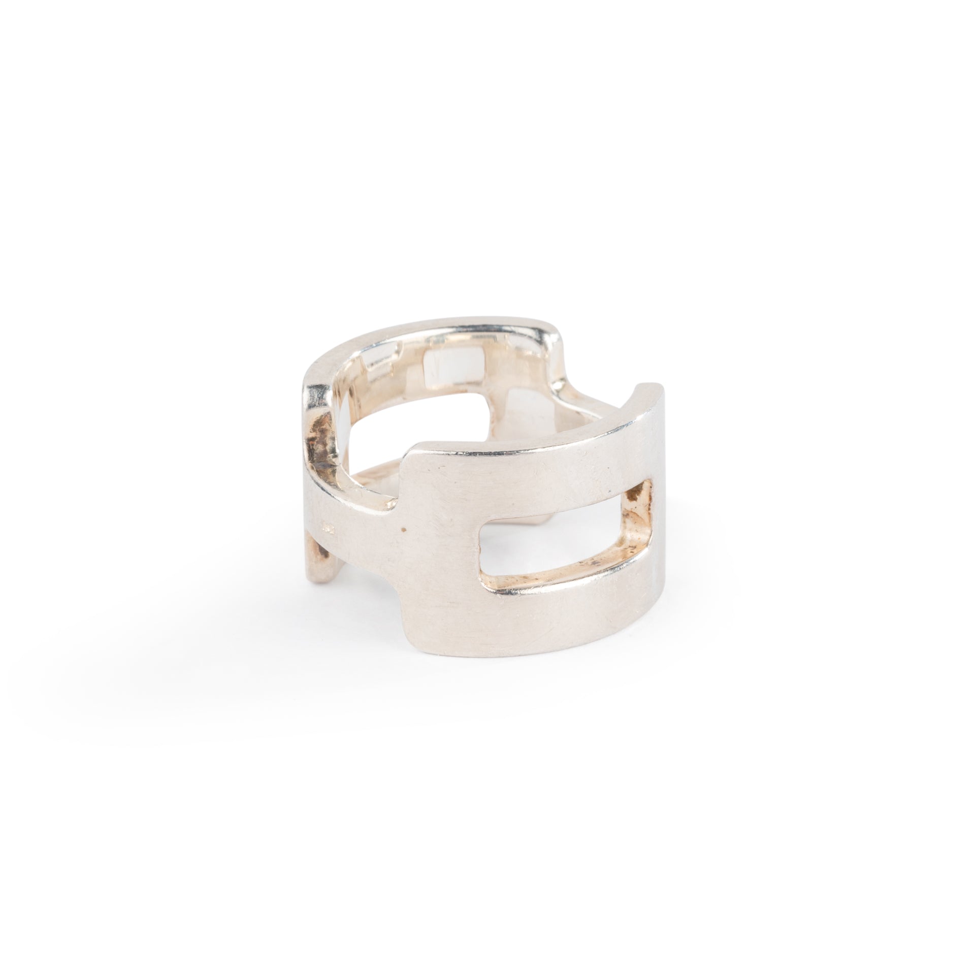 Bague Hermes en argent classique. Structure en forme de H.