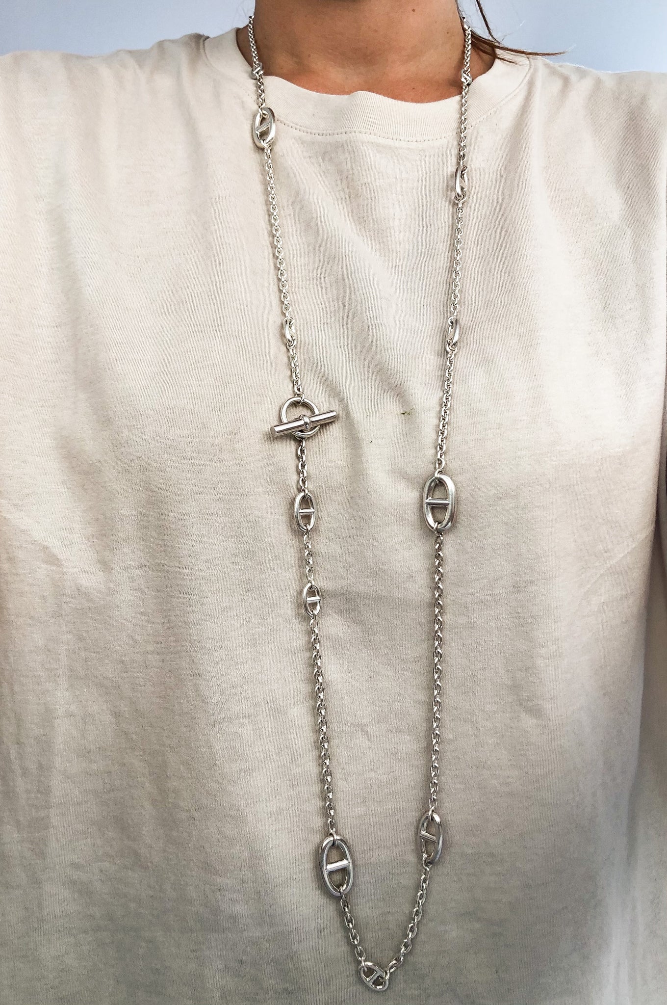 Sautoir en argent Hermès modèle Farandole composé d'une succession de élégants maillons ovales ajourés en argent.