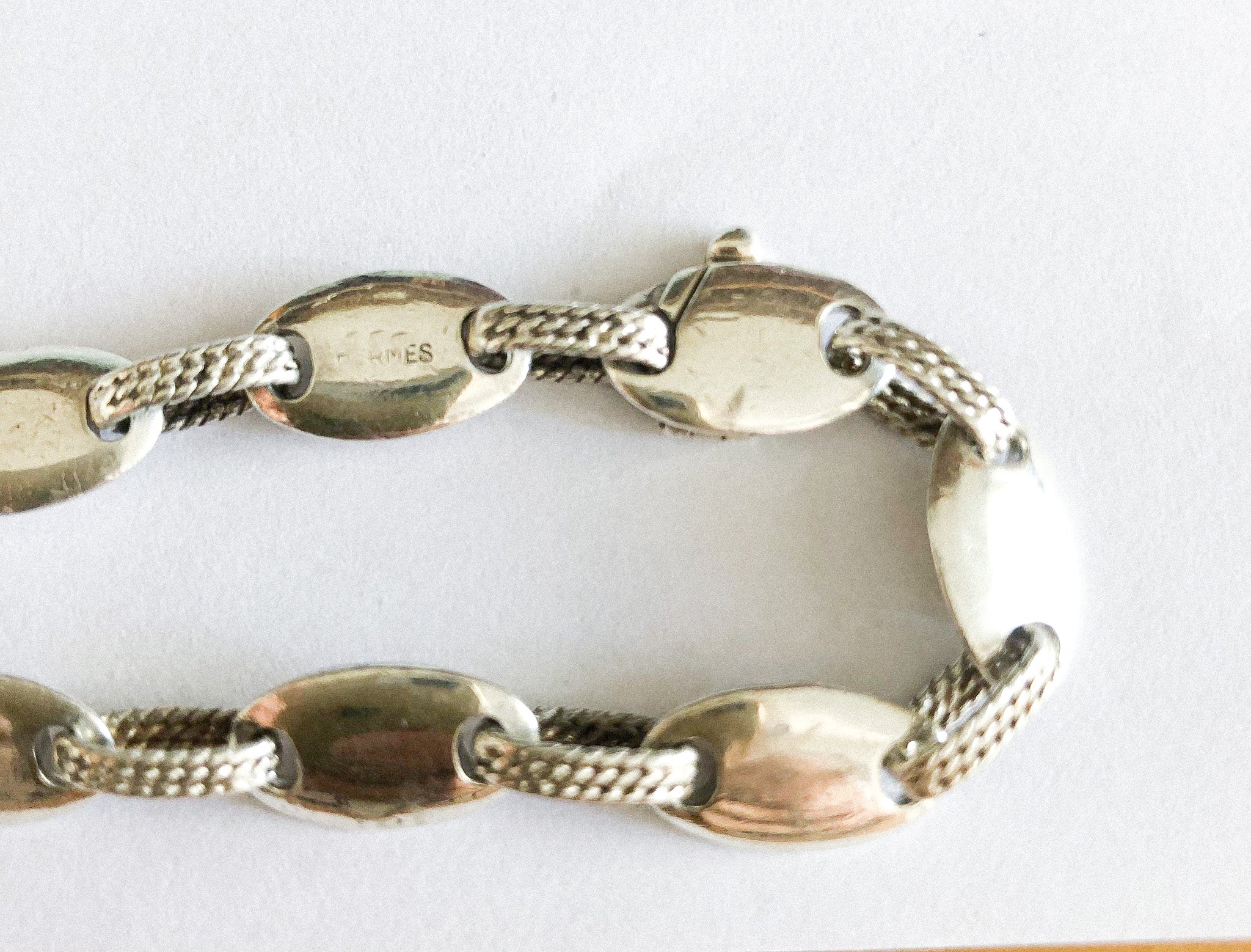 Sautoir signé de la maison hermès vintage ,maillons Grain de café articulé de maillons allongés cordés.