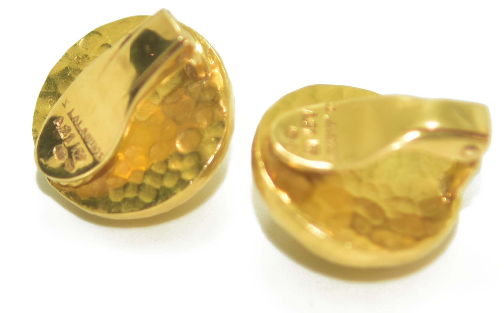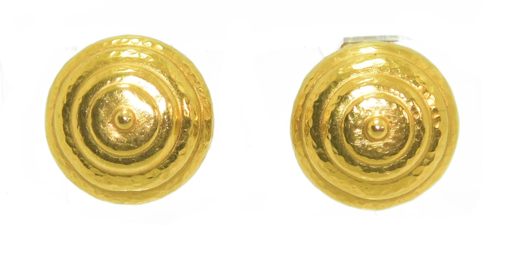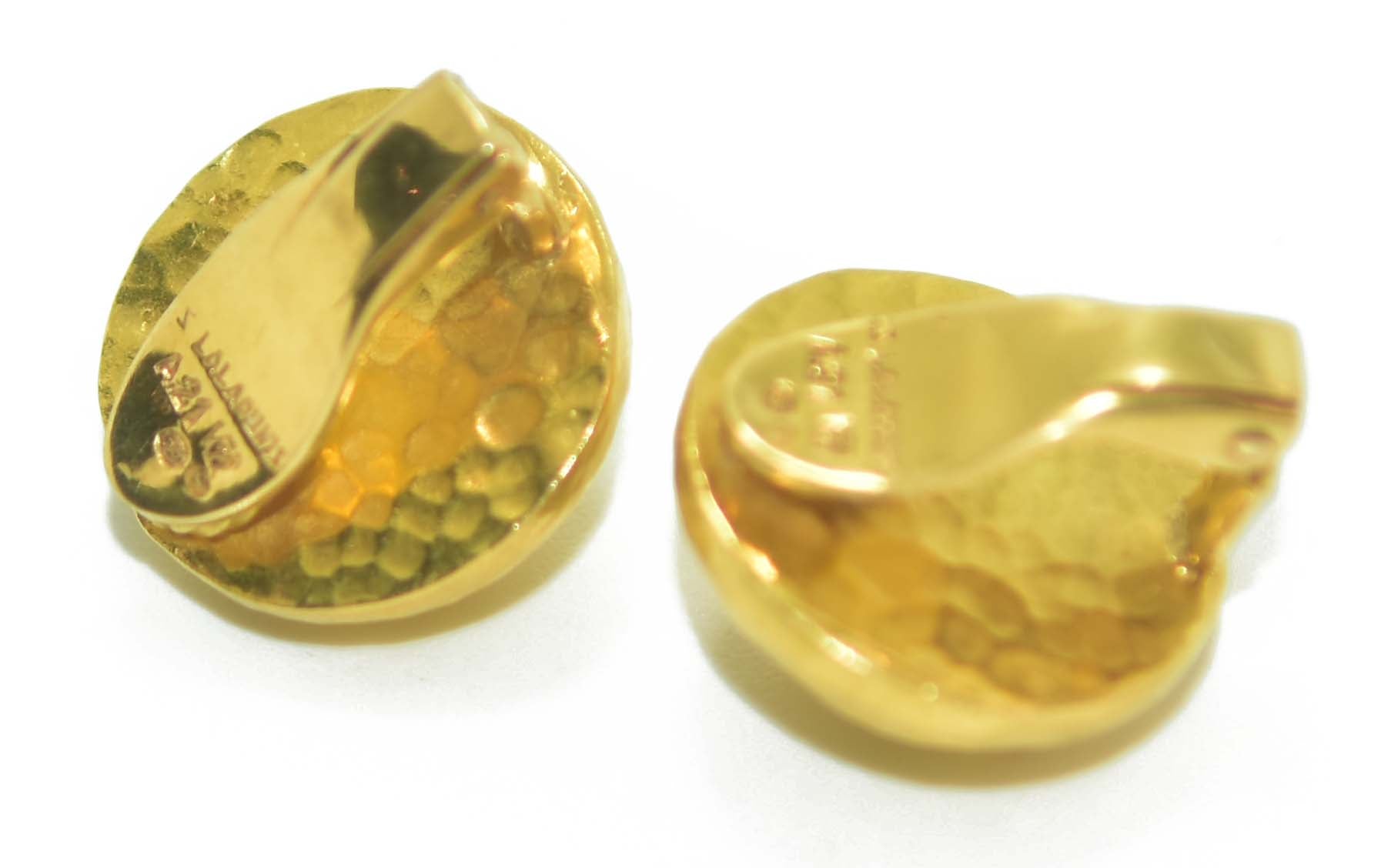 Paire de clips d'oreilles Lalaounis en or jaune, composée de 2 ravissants motifs ronds godronnés en or jaune.