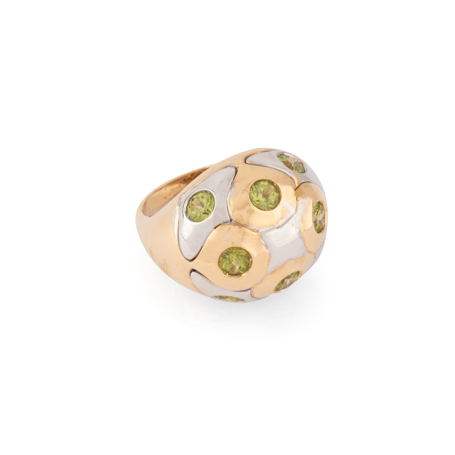 Bague boule de la maison Bvlgari en péridot,sur des découpes en or jaune et gris.