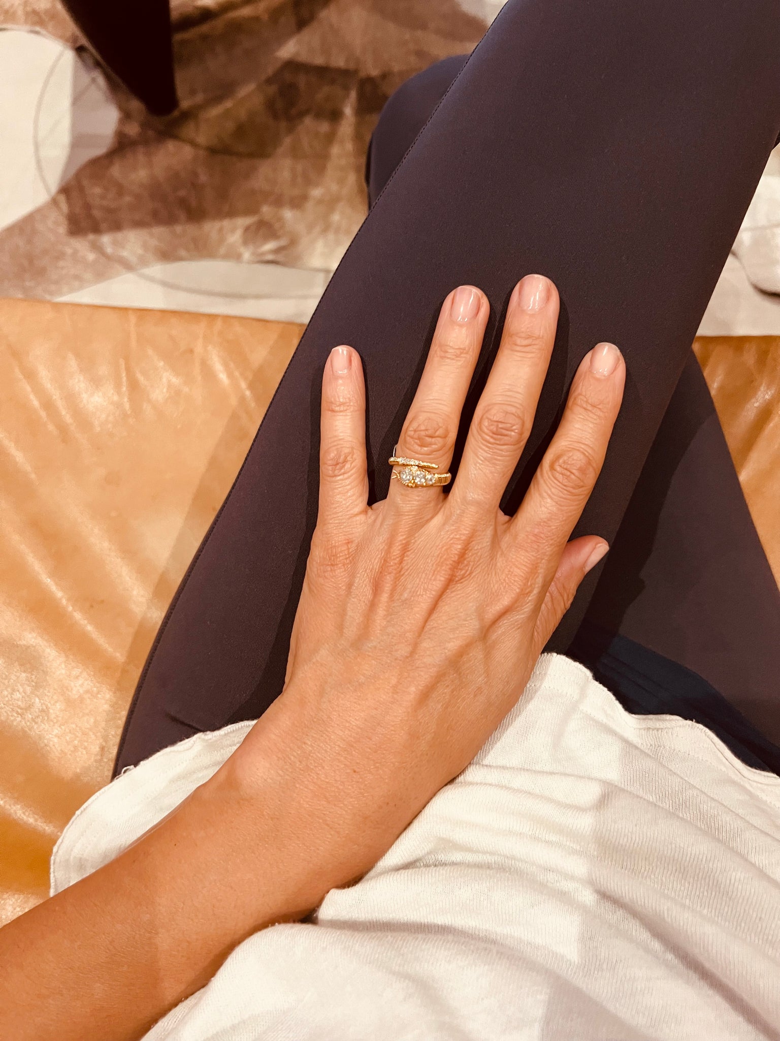 Bague tubogas en or jaune 14k ornée de 3 roses de diamant sur la tête du serpent finissant par des diamant taille ancienne sur la queue .