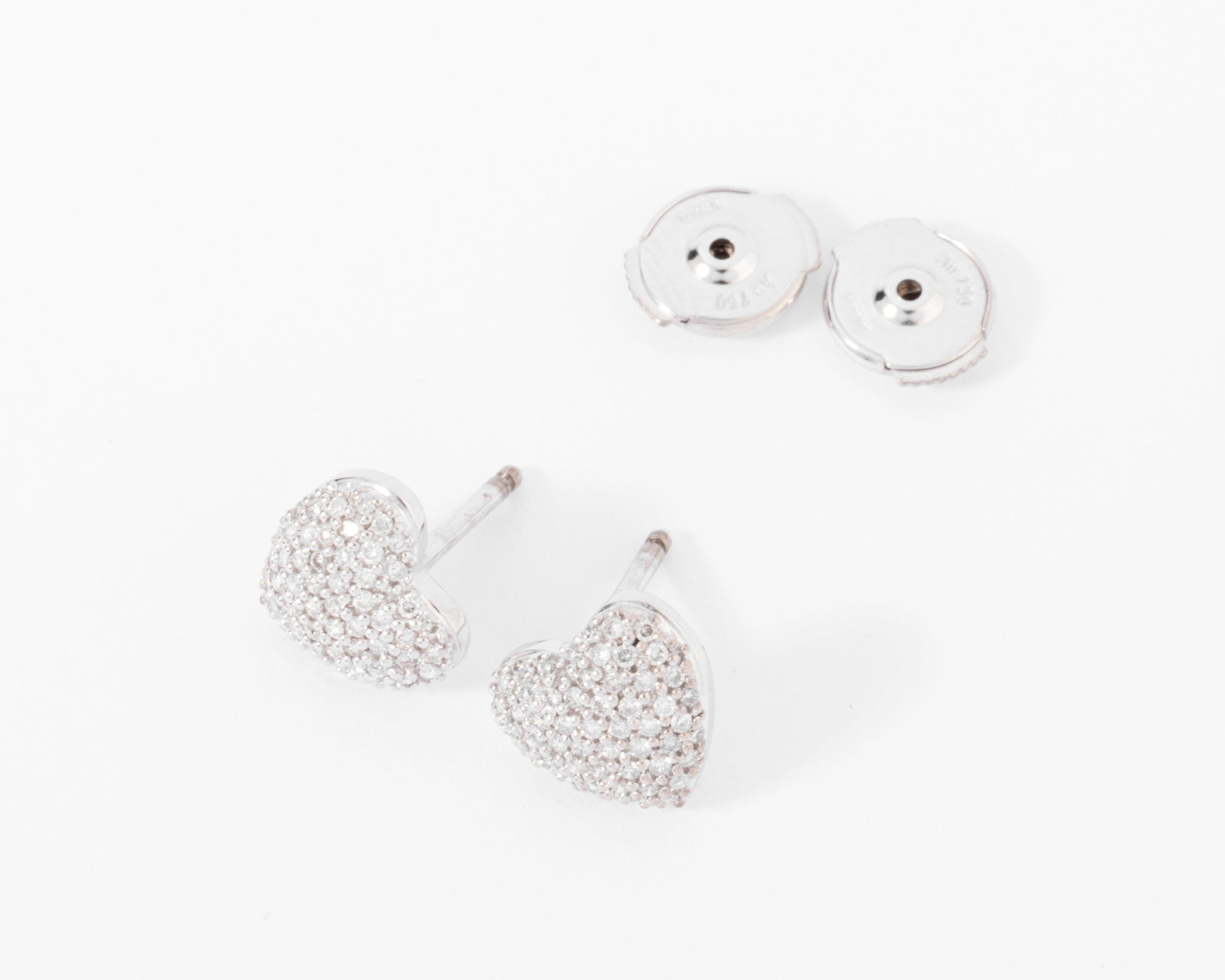 Boucles d'oreilles en or gris formant des cœurs, entièrement pavées de diamant taille brillant.
