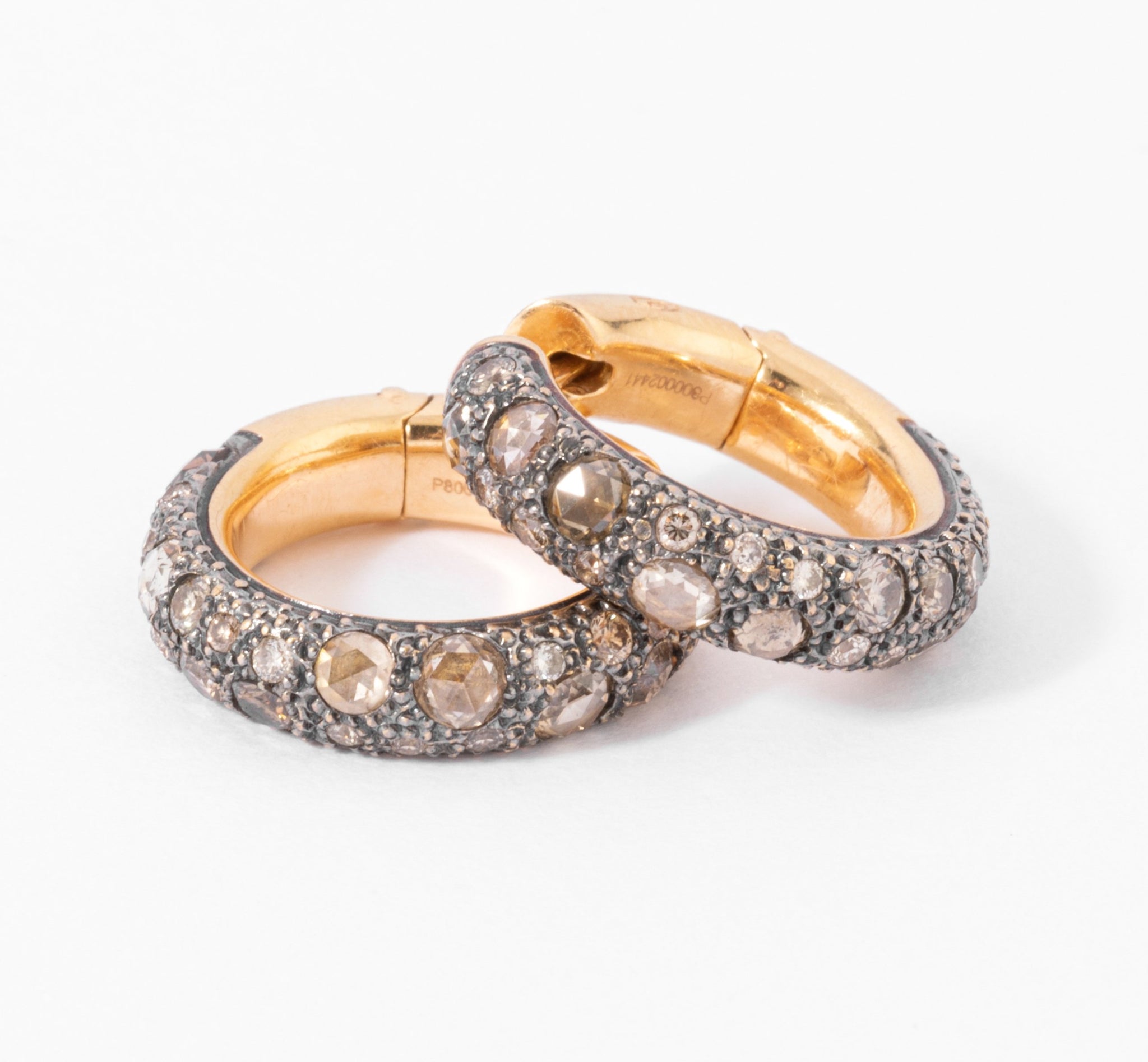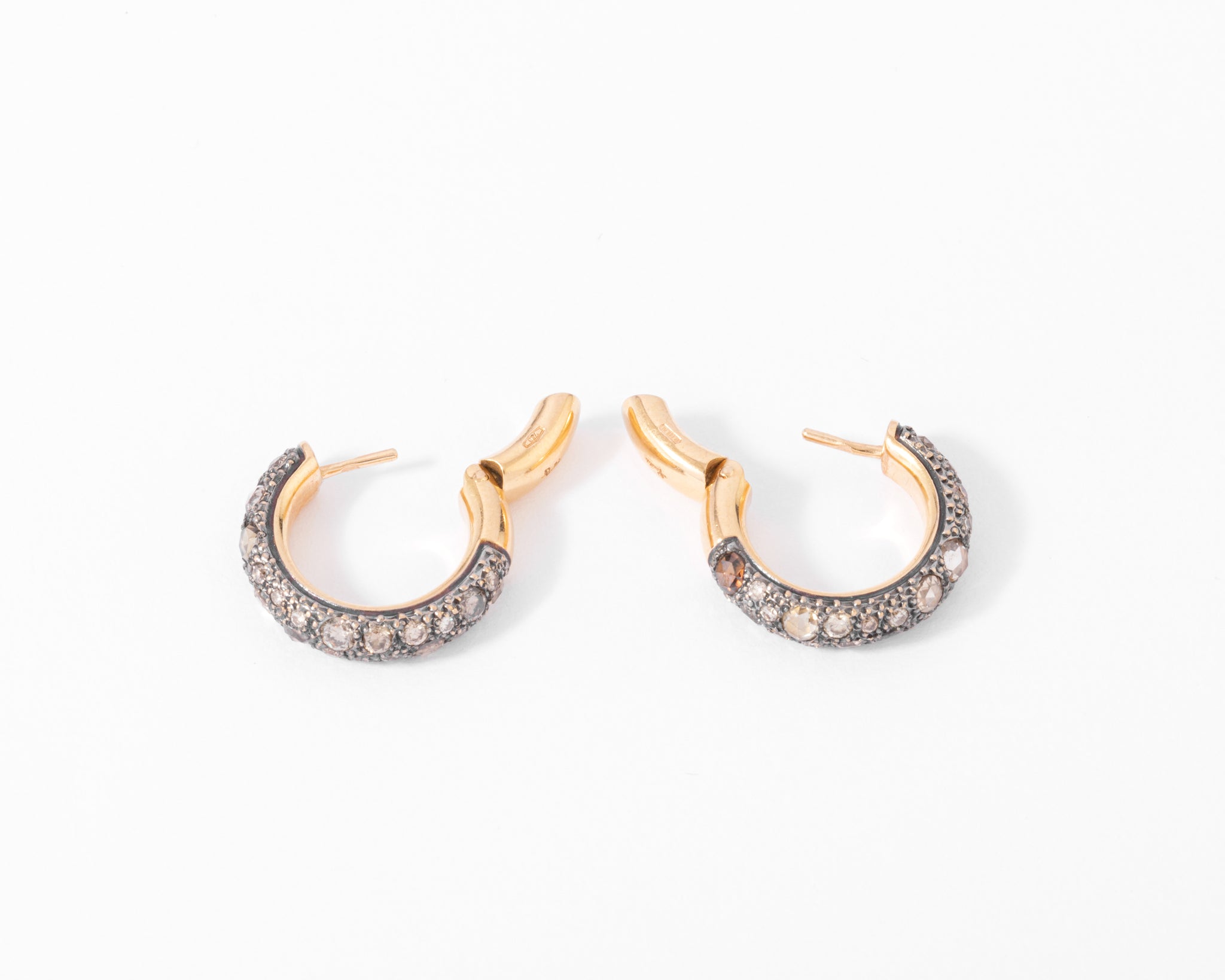 Boucle d'oreilles en or rose bruni et diamants bruns taille diamant signée de la maison Pomellato modèle Tango.