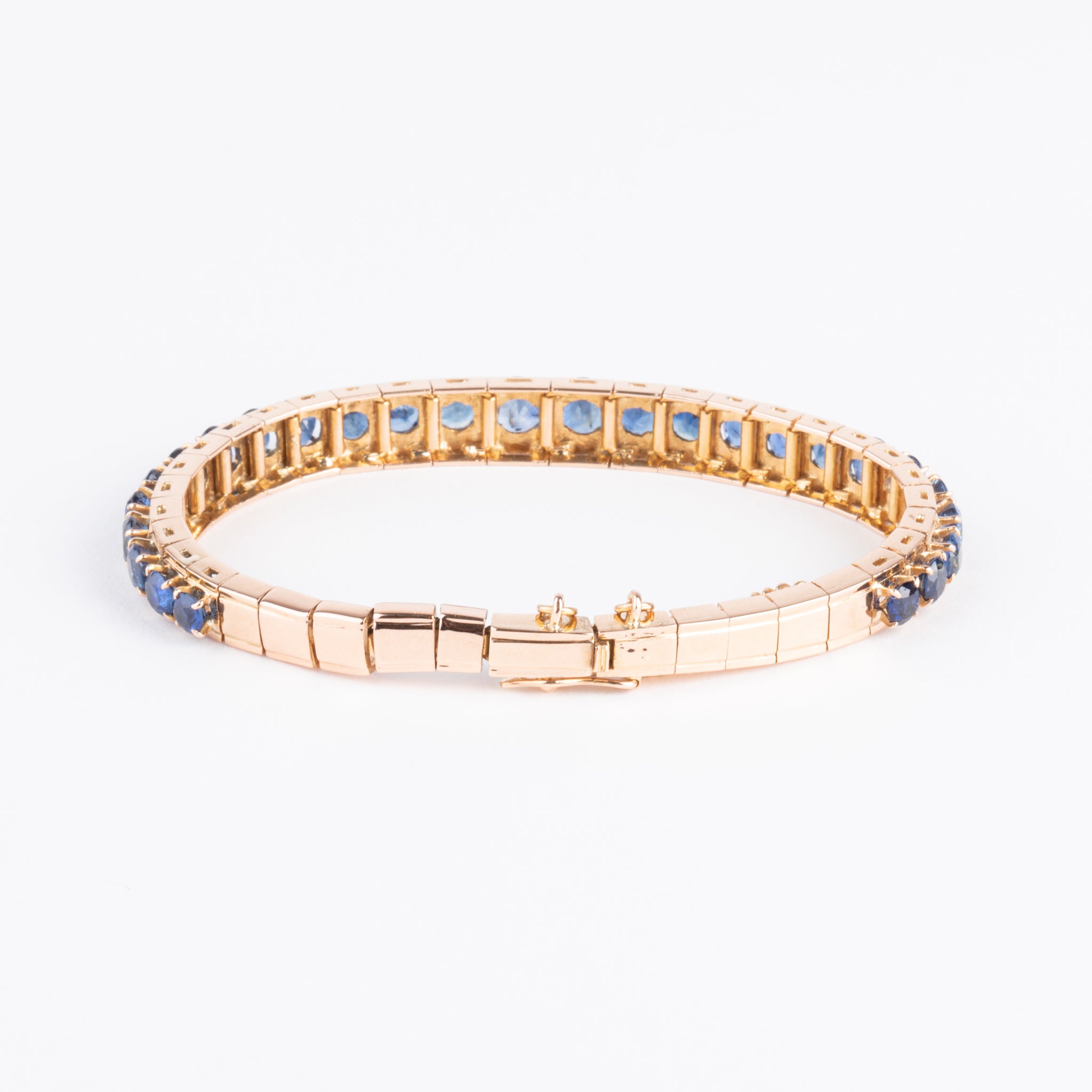 Bracelet en or rose Napoléon III orné de 27 saphirs ovales sur griffes. Fermeture boite et Huit de sécurité.