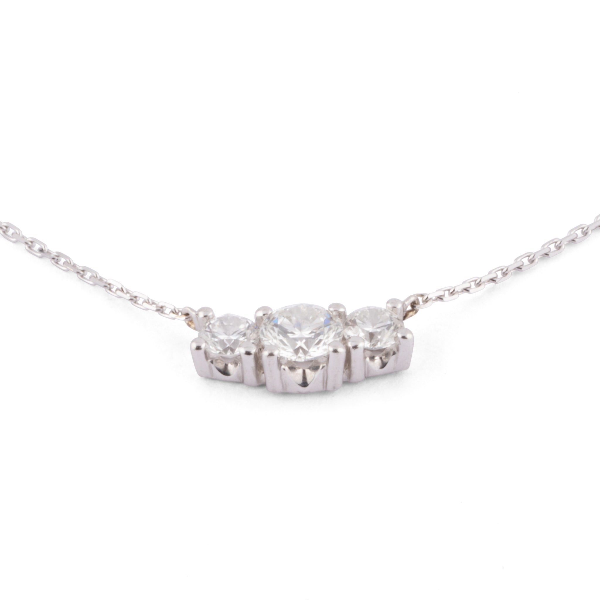 Collier en or gris orné de 3 diamants taille brillant sur serti griffé.