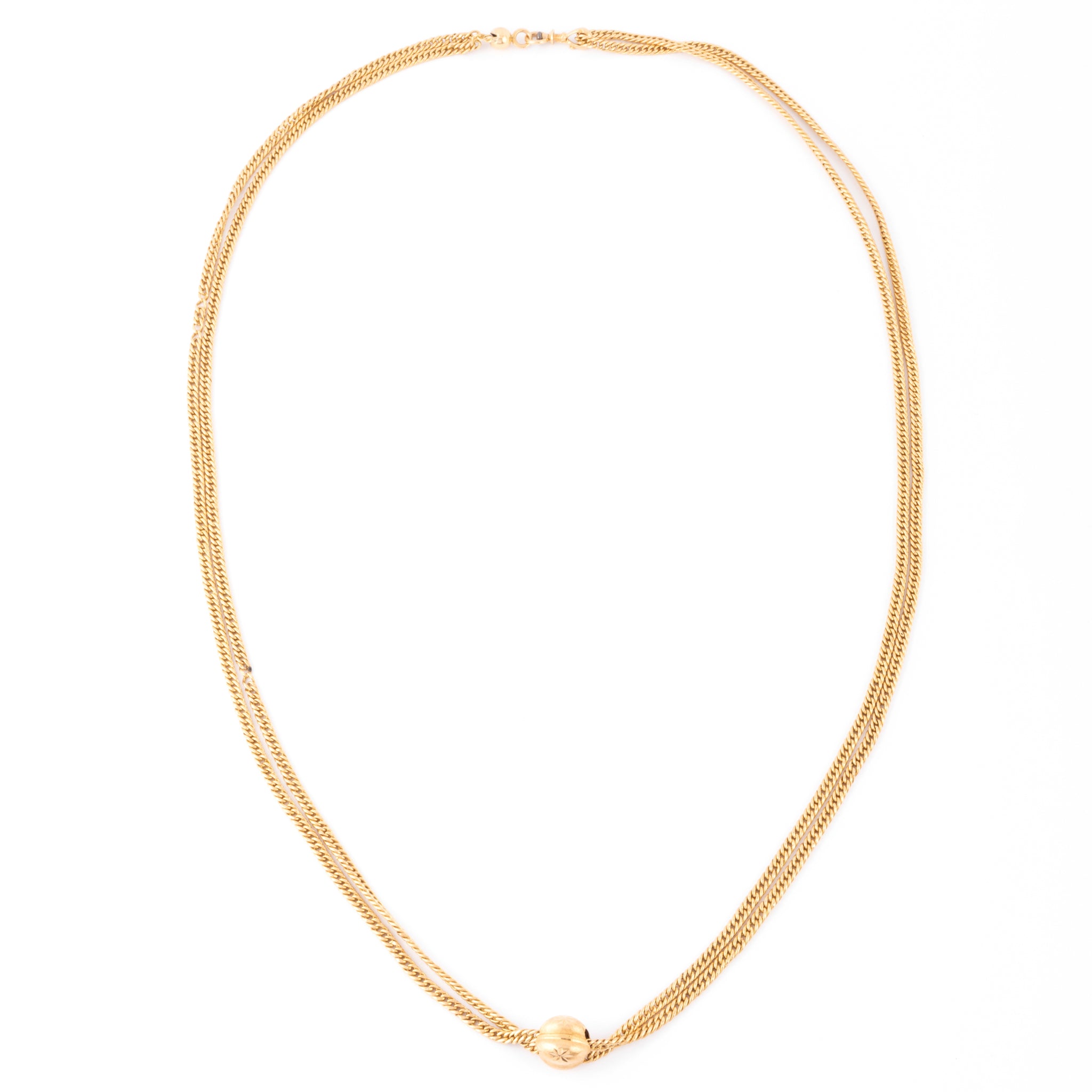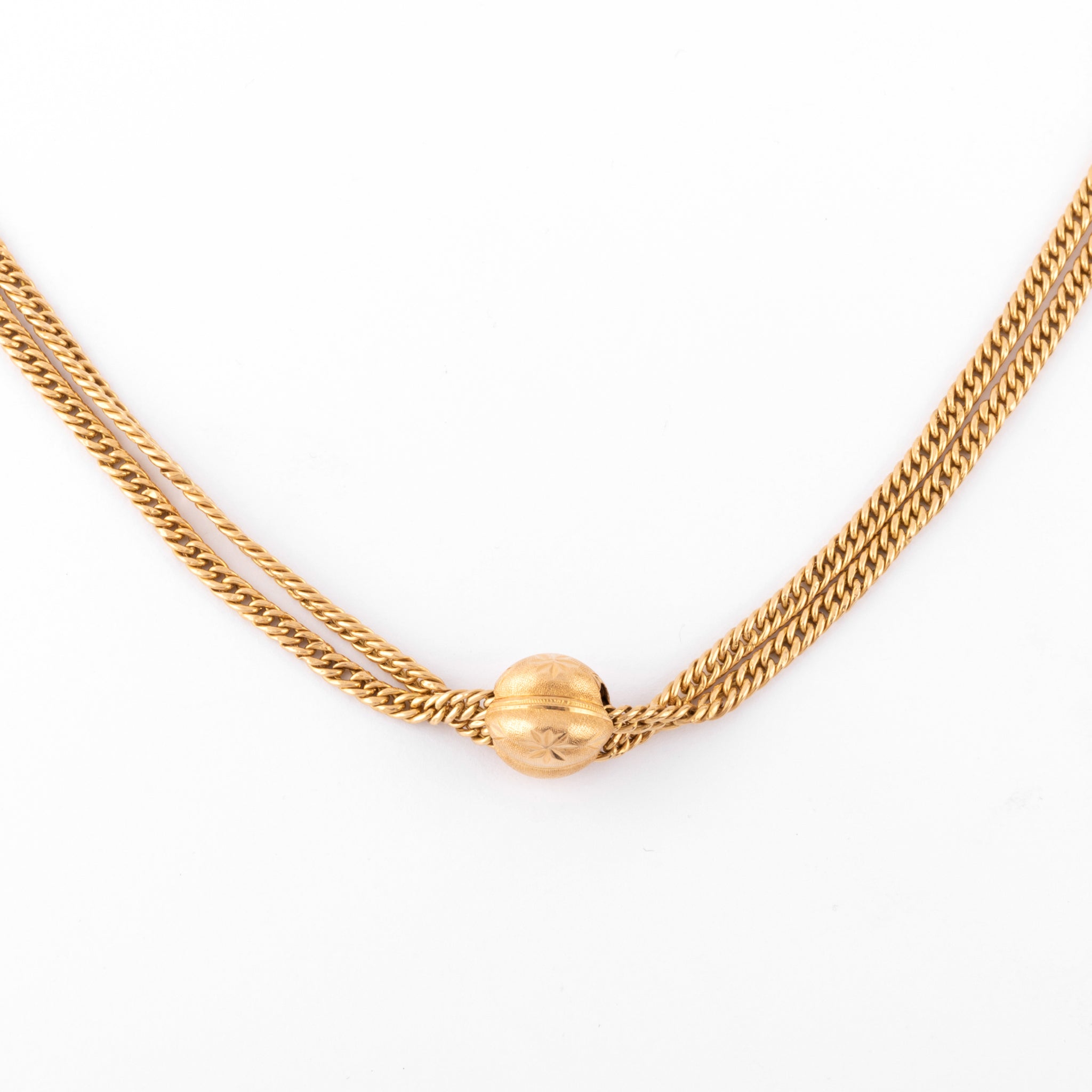 Sautoir Napoléon III en or jaune orné d'un fermoir tonneau, le sautoir est composé d'une double chaine.