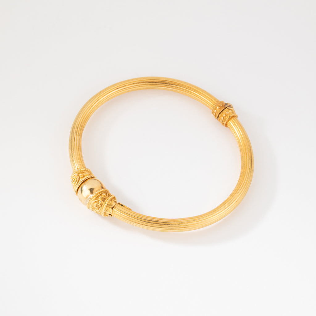 Bracelet jonc en or jaune 22 k du créateur Lalaounis en or jaune ciselé et fermeture ornée d'une boule d'or ciselé.