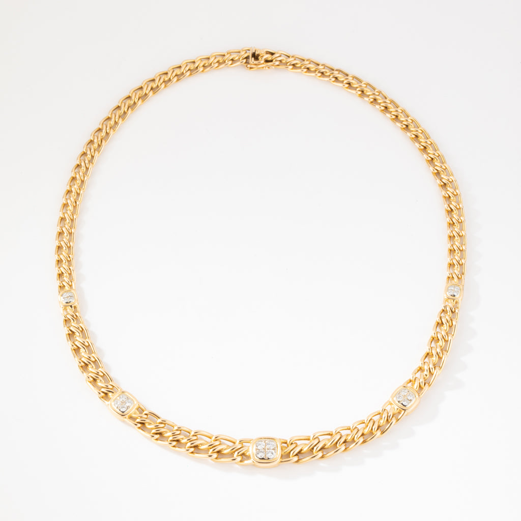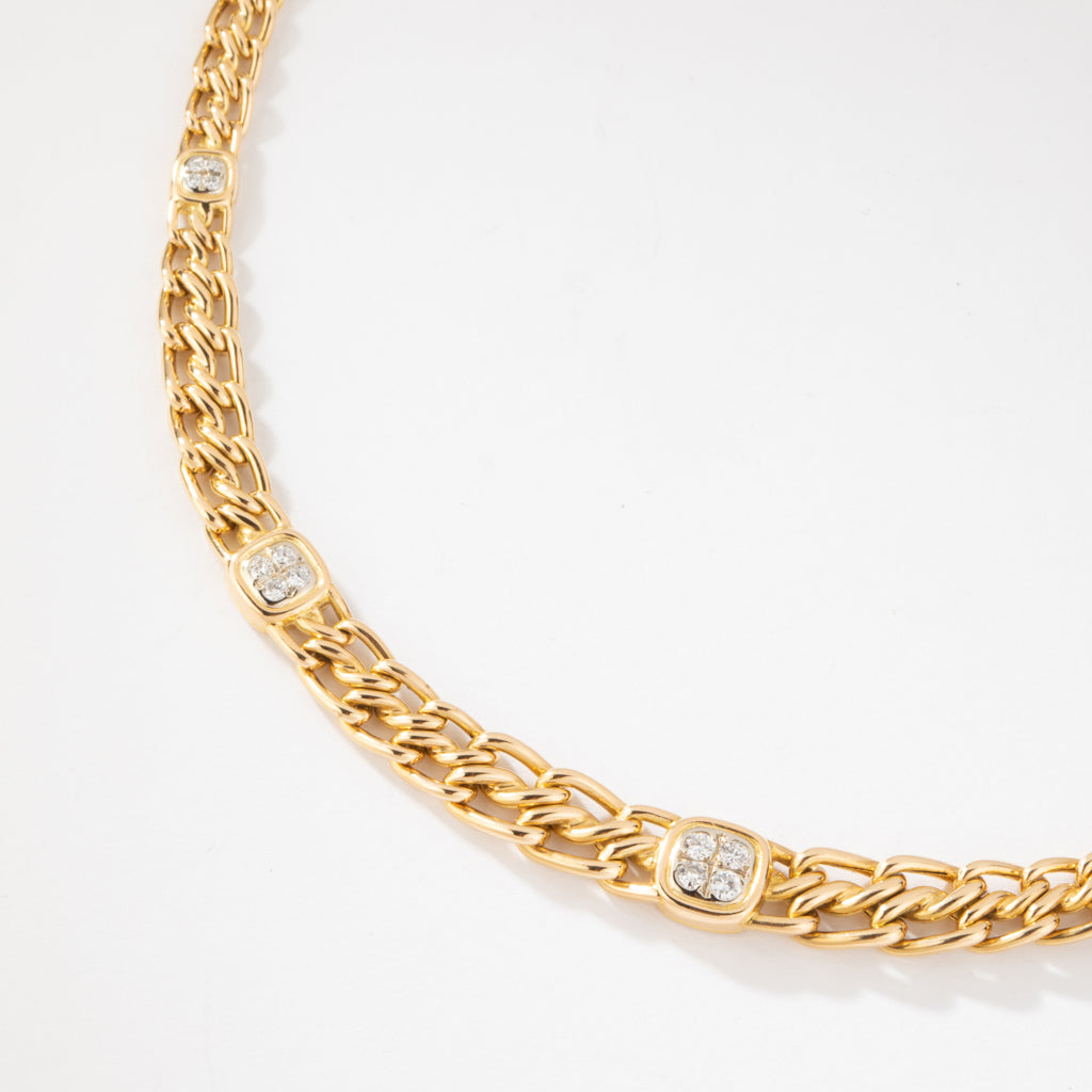 Collier or jaune maille gourmette intercalé de maillon en diamant