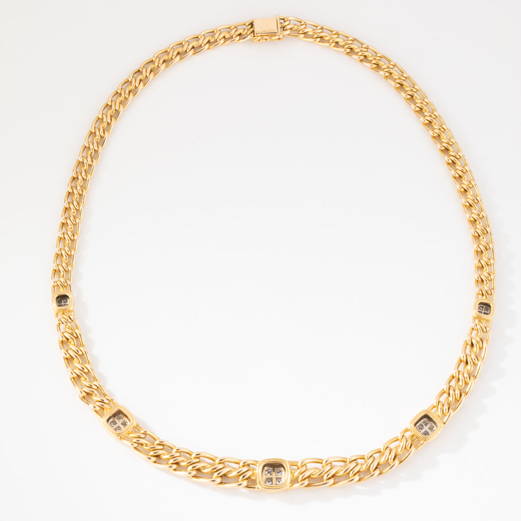 Collier or jaune maille gourmette intercalé de maillon en diamant de la maison Aldebert.