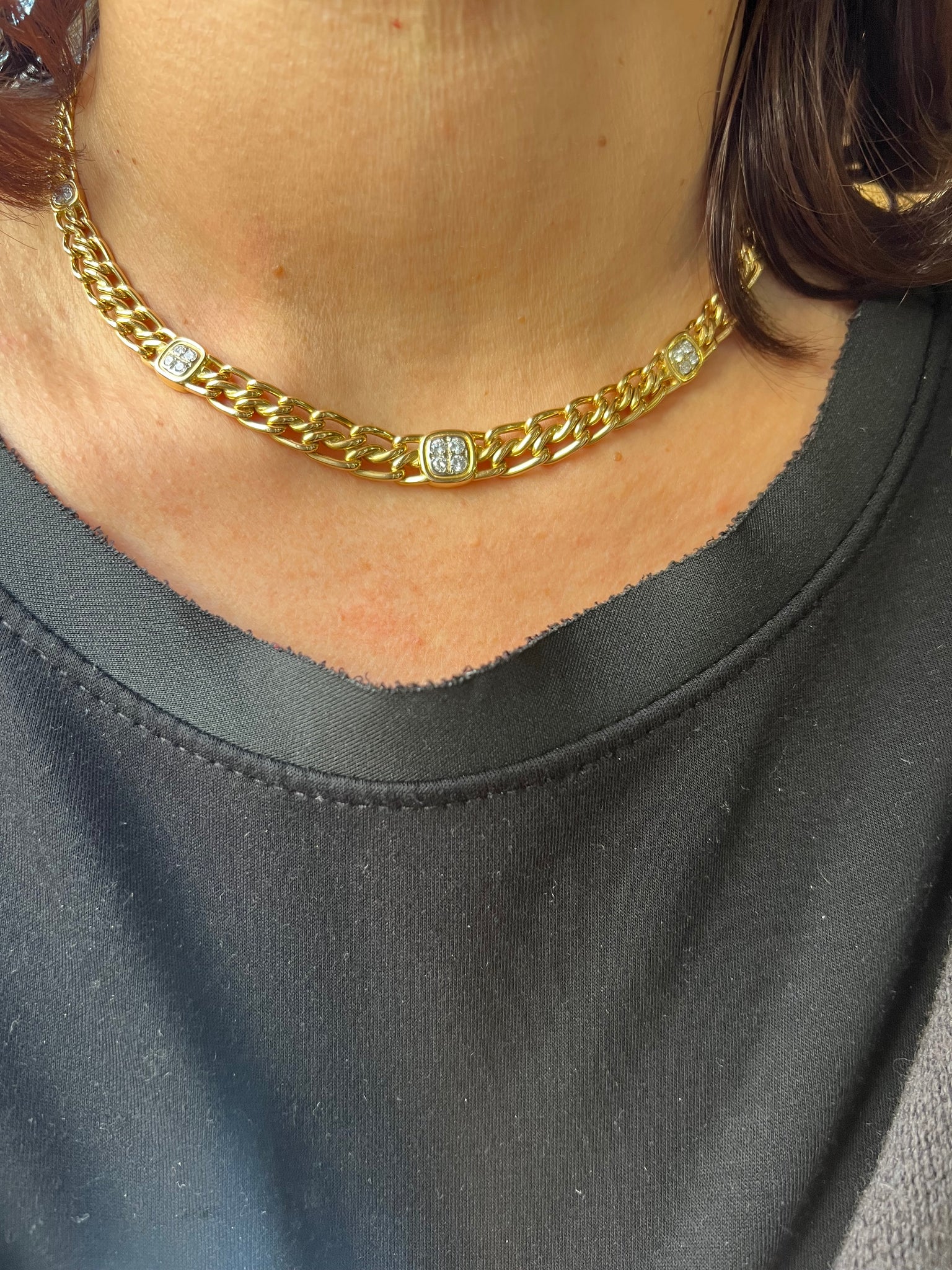 • Charger l'image dans la galerie, Collier or jaune maille gourmette intercalé de maillon en  diamant