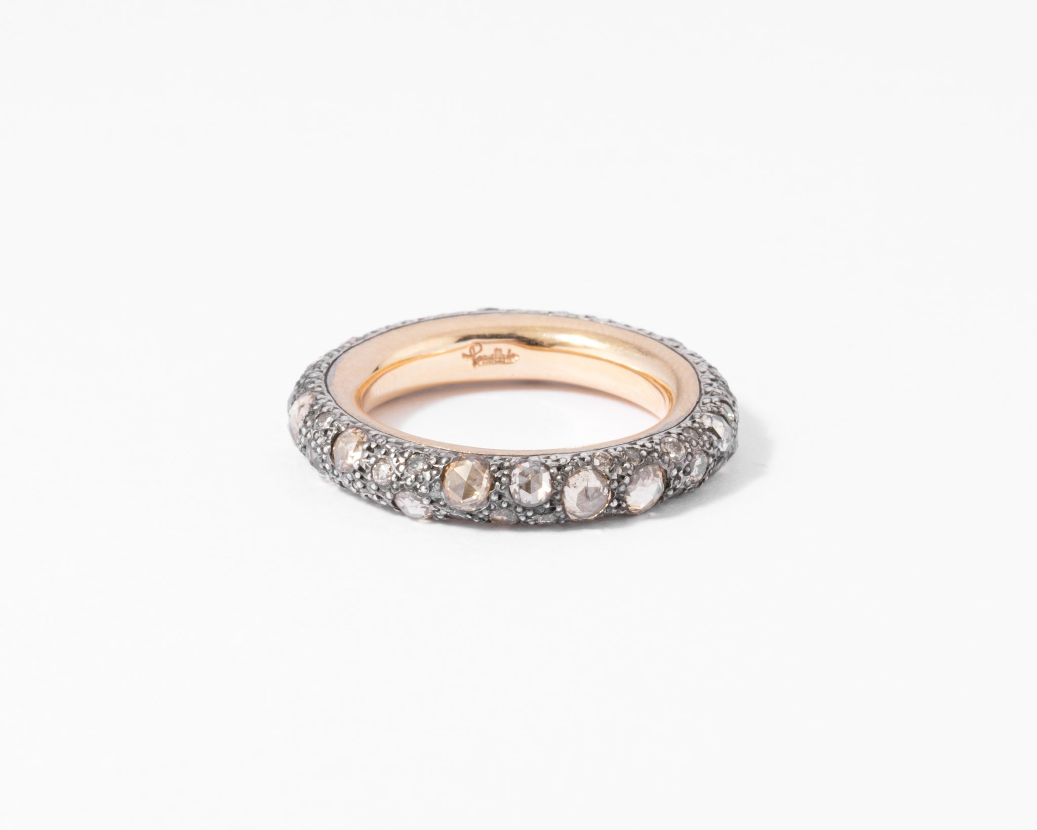 Alliance en or rose bruni et diamants bruns taille en brillant signée de la maison Pomellato modèle Tango.