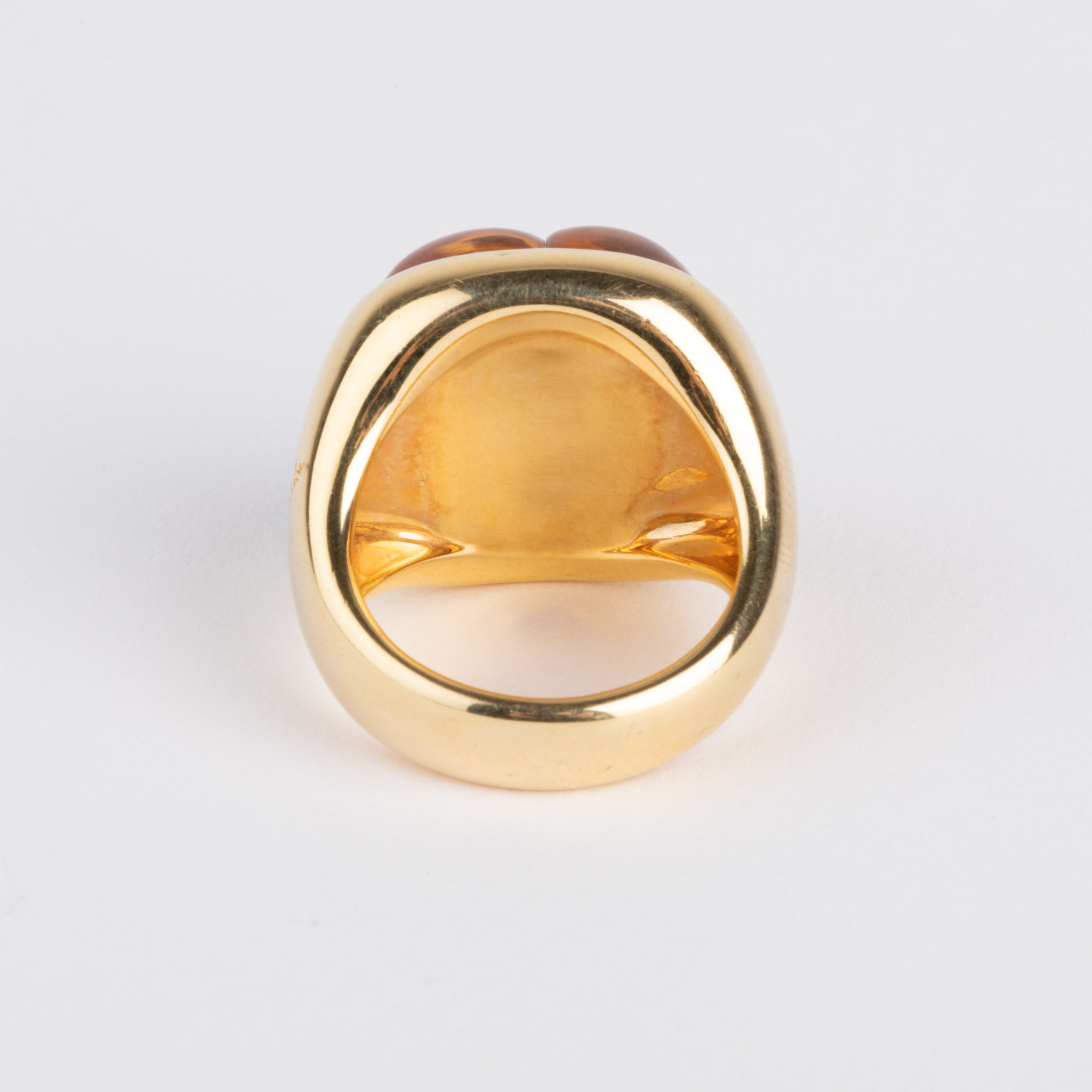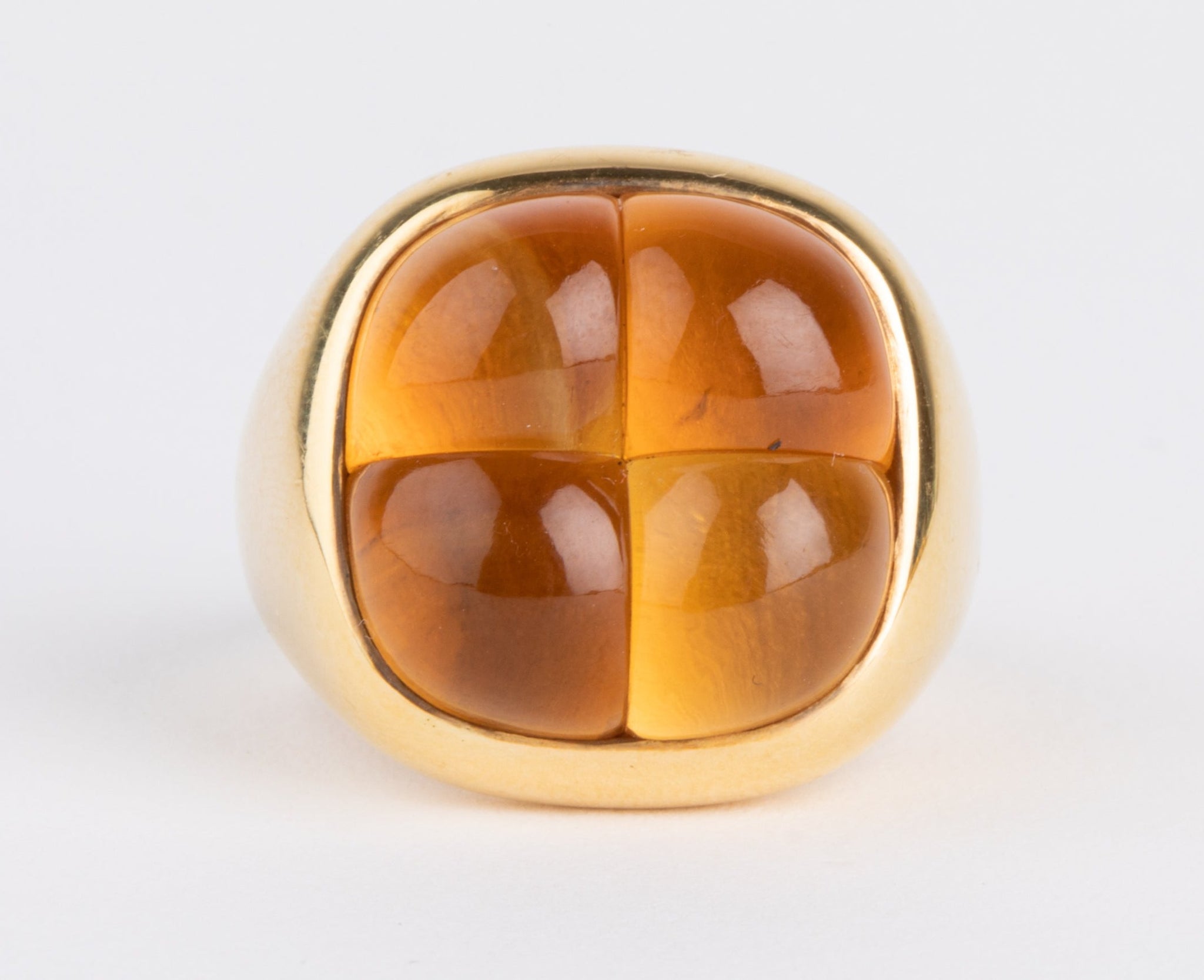 Bague de la maison Pomellato collection Mosaïque en or jaune et citrine, ornée en son centre de 4 beaux cabochons géométriques en citrine.