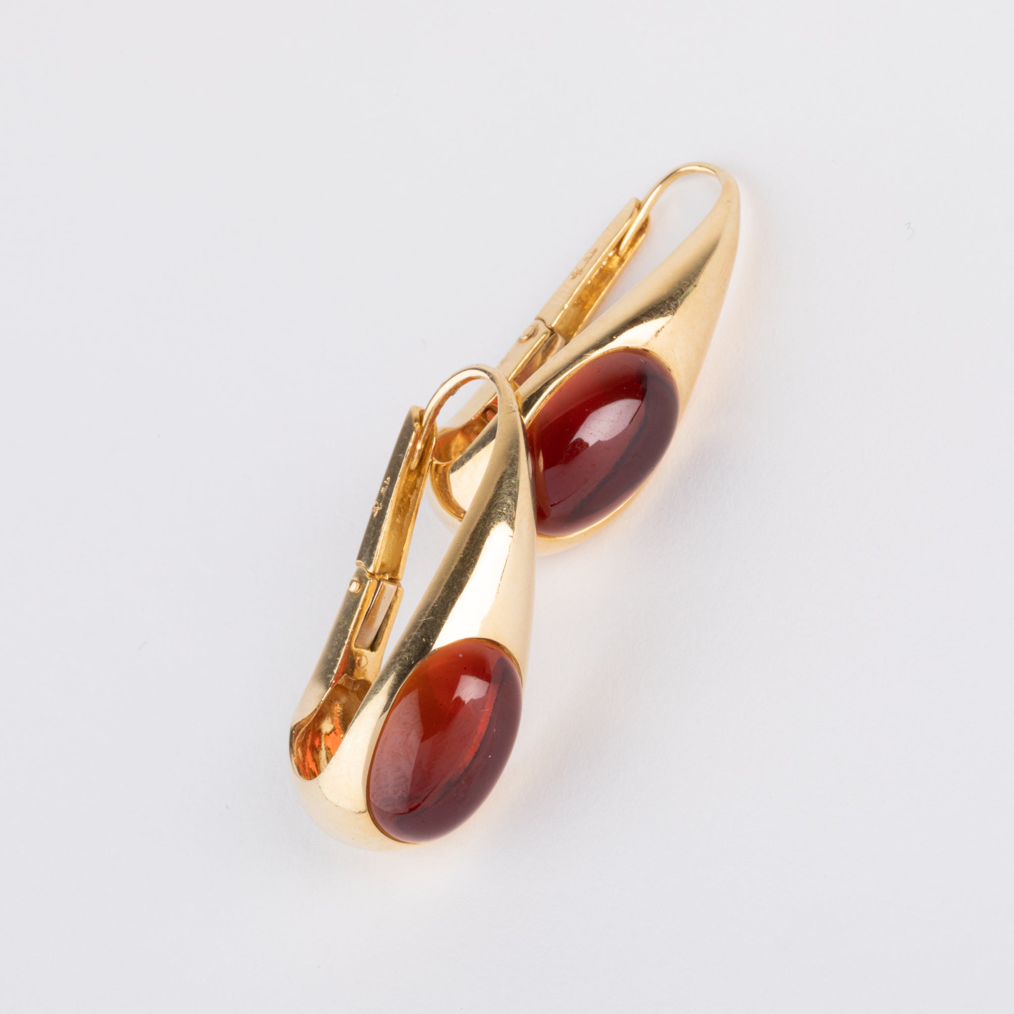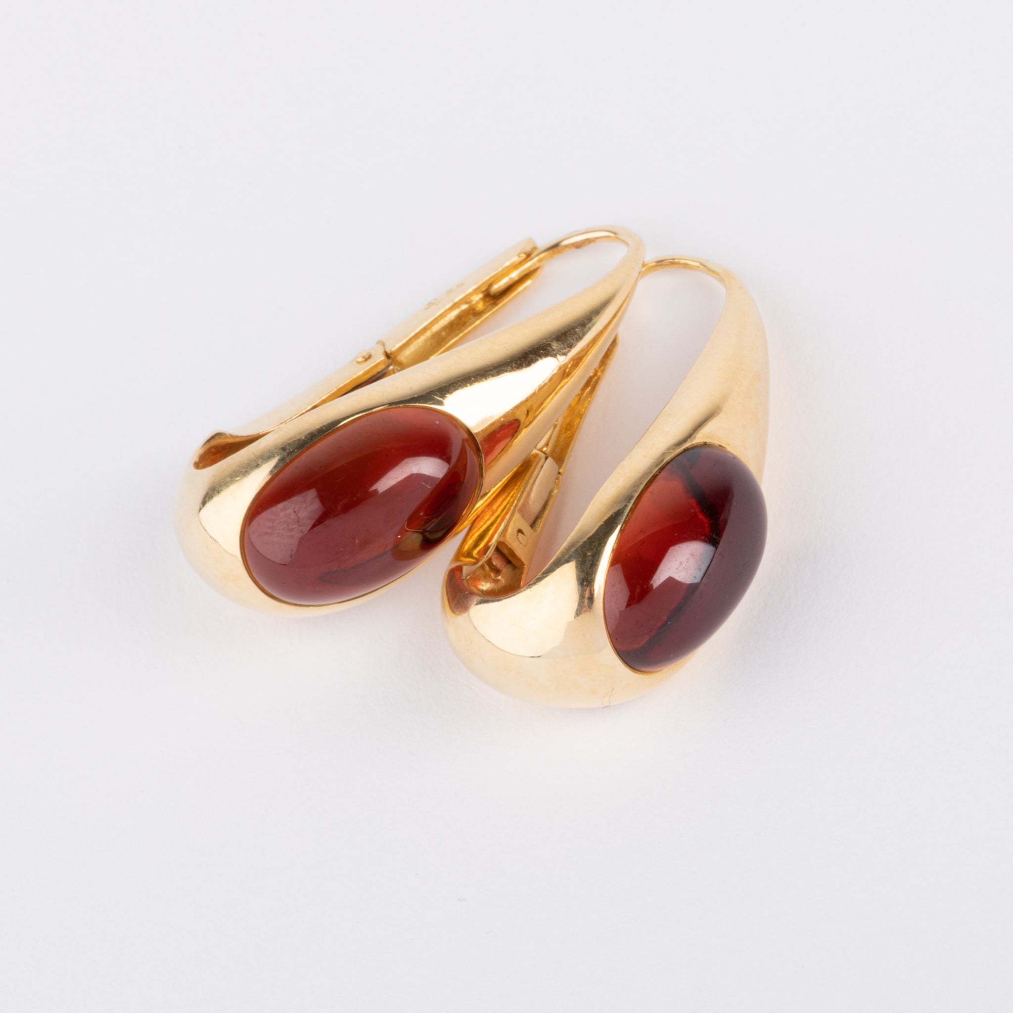Boucles d'oreilles en or jaune ovaloïdes serties d'un grenat ovale de la maison Pomellato