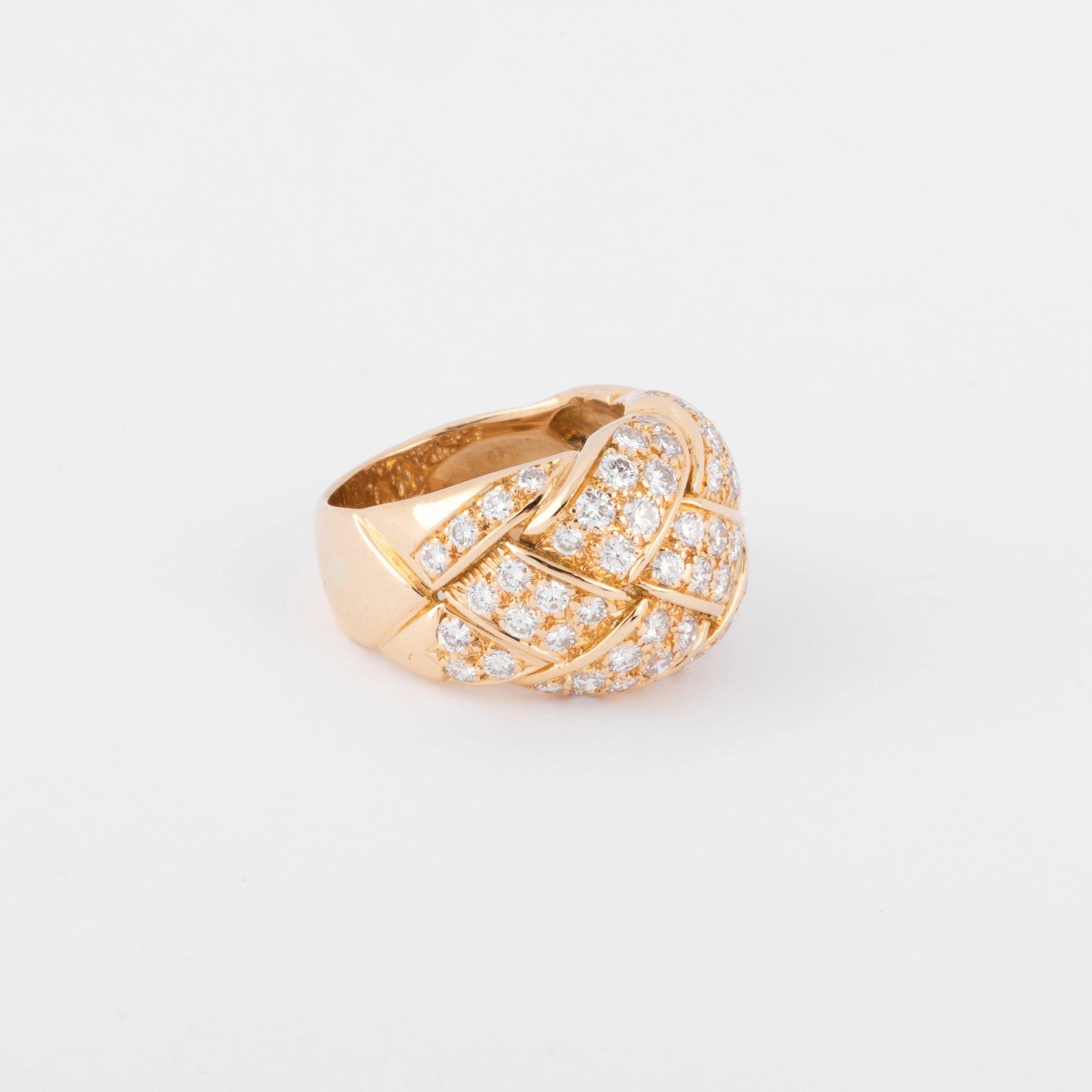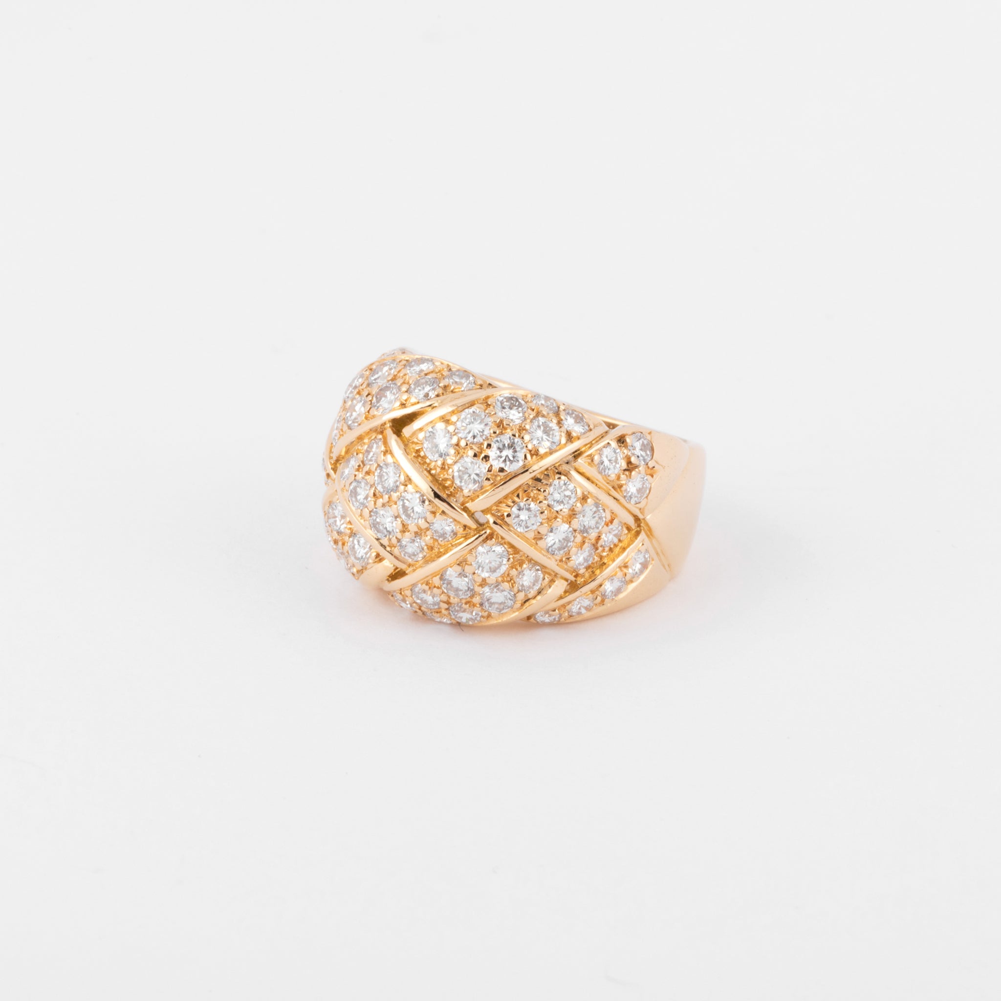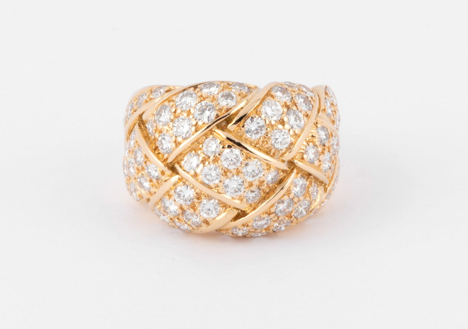 Bague jonc or jaune et diamant à motif quadrillage pavée de diamant sur le dessus signée de la maison Van Cleef and Arpels.